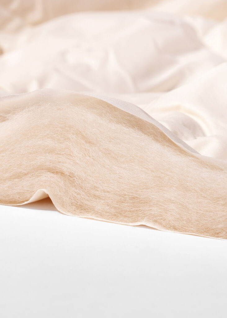 Nous espérons pouvoir bientôt vous fournir le linge de lit le plus adapté possible à nos produits, en attendant la règle à respecter est simple : afin de préserver les excellentes vertus de la laine d’alpaga il faudra utiliser une housse de couette naturelle. Le satin ou la percale de coton conviennent parfaitement, vous pouvez également utiliser des matériaux plus chauds comme la soie en hiver, et plus légers comme le lin pour l’été.